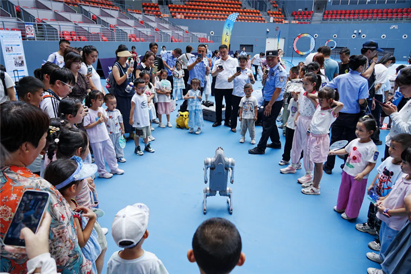 緊接著,在網(wǎng)球館前,大家首先被特警隊員精彩的防暴小隊?wèi)?zhàn)術(shù)演練所震撼,矯健的身手贏得了陣陣掌聲。警犬迅猛精準的撲咬展示更是讓小朋友們連連叫好。警用機器狗的靈活表演引得大家紛紛上前互動,最讓小朋友們躍躍欲試的還是無人機穿梭器的體驗環(huán)節(jié),戴上眼鏡感受著穿梭器的“速度與激情”,孩子們臉上洋溢著喜悅和興奮,近距離感受到了科技在公安工作中的強大應(yīng)用。