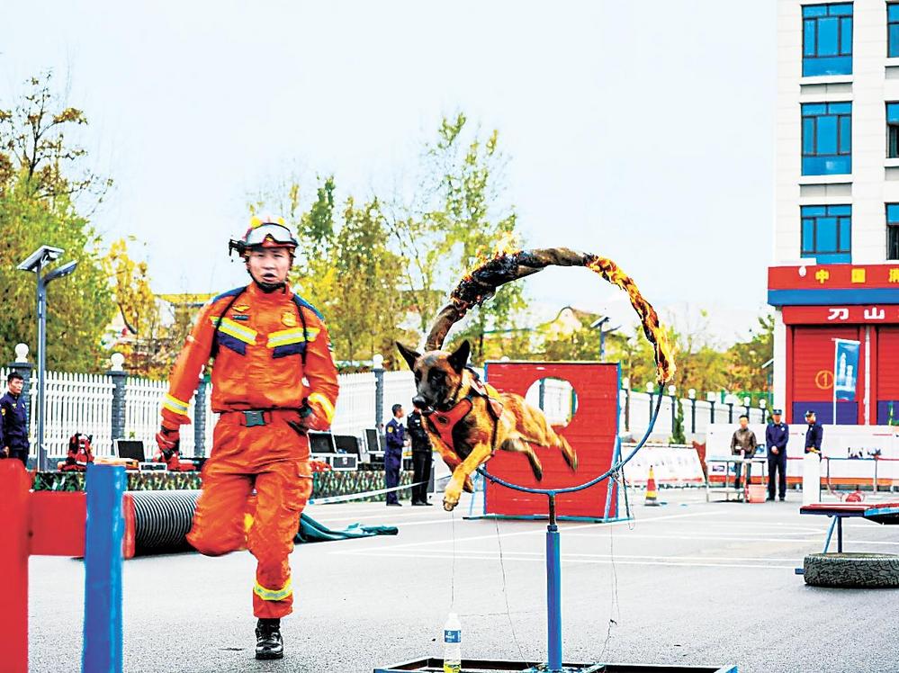 搜救犬搜救演練現(xiàn)場。臨夏州消防救援支隊供圖