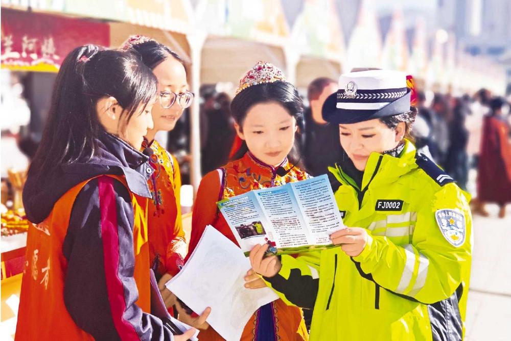 民警向群眾講解交通安全知識。11月27日,廣河縣公安局交管大隊(duì)民警走進(jìn)齊家文化廣場,利用戲曲進(jìn)鄉(xiāng)村文藝匯演的有利契機(jī)開展交通安全系列宣傳活動。新甘肅·甘肅法治報通訊員 汪洋 攝