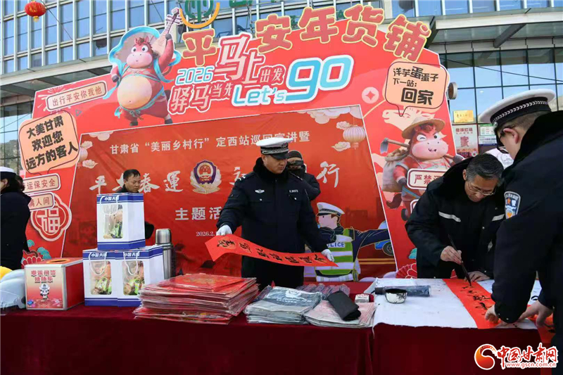 2月10日,農(nóng)歷臘月二十三,是中國傳統(tǒng)節(jié)日小年,正值2026年春運(yùn)高峰,甘肅省公安廳交通管理總隊(duì)聯(lián)合定西市公安局交管支隊(duì)在服務(wù)區(qū)舉辦了甘肅省“美麗鄉(xiāng)村行”(定西站)交通安全巡回宣講暨“平安春運(yùn)·交警同行”主題活動,向南來北往的駕駛?cè)怂蜕闲麓旱淖8:吞貏e的“安全年禮”。
