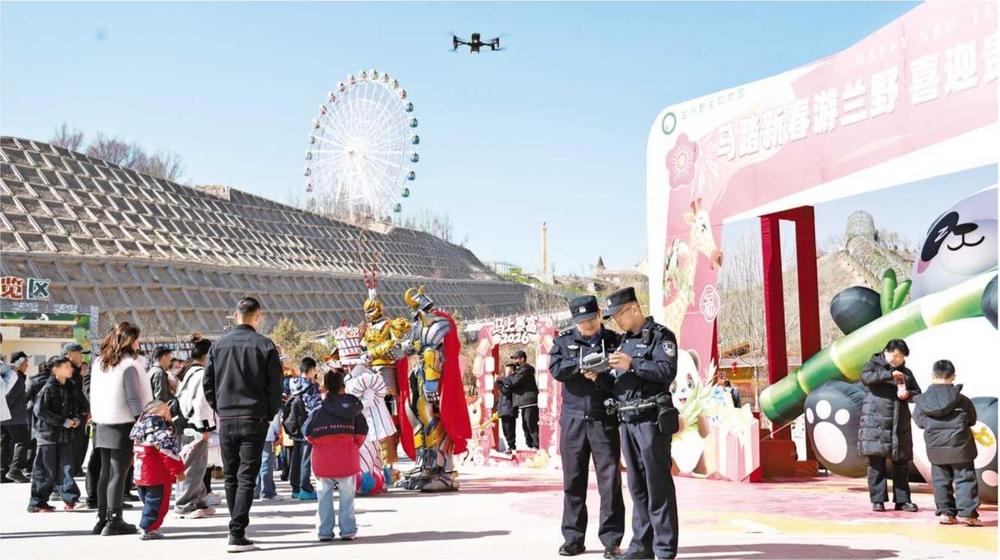 春節(jié)假期,蘭州市公安局安寧分局民輔警在景區(qū)護(hù)航游客安心游玩。新甘肅·甘肅法治報通訊員 張軍揚 攝