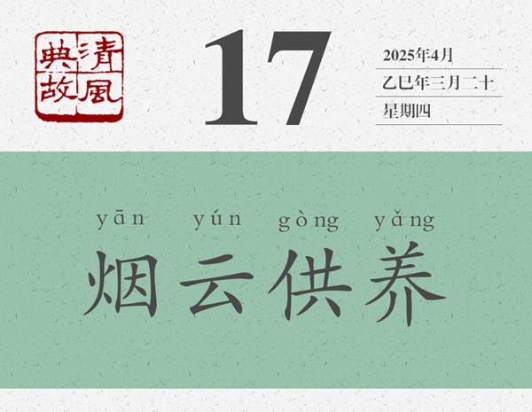 煙云,即山水風(fēng)景。供養(yǎng),即陶冶滋養(yǎng)。“畫中煙云供養(yǎng)”的原意是,黃公望和米友仁之所以貌如童顏,神明不衰,是因?yàn)槠渖剿嬛袩熡隄鳚鳌⒈§F繚繞的意境滋養(yǎng)了他們。后世即以“煙云供養(yǎng)”為典,喻美好的自然環(huán)境,可以舒暢人的心情,撫慰人的精神。這就是為什么人們把自然環(huán)境好的地方稱作“養(yǎng)生之地”的原因。錢大昕《梁山舟前輩八十》詩:“占得西湖第一峰,煙云供養(yǎng)幾千重。門懸曼碩山舟字,人識(shí)坡公笠屐容。”