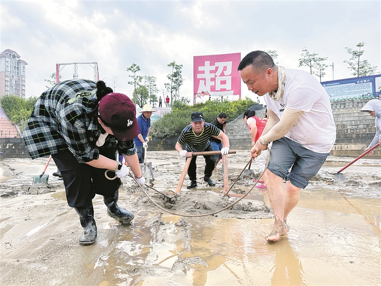 廣西壯族自治區(qū)柳州市融安縣紀(jì)委監(jiān)委聞“汛”而動(dòng),緊盯防汛統(tǒng)籌協(xié)調(diào)等關(guān)鍵環(huán)節(jié)開展全程監(jiān)督檢查。圖為日前,該縣紀(jì)檢監(jiān)察干部在河?xùn)|龍舟廣場(chǎng)開展災(zāi)后清淤工作。覃燕 攝