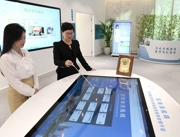 深圳市前海深港現(xiàn)代服務(wù)業(yè)合作區(qū)紀(jì)檢監(jiān)察工委強(qiáng)化大數(shù)據(jù)信息化賦能,搭建監(jiān)督服務(wù)平臺,暢通問題反映渠道。圖為該紀(jì)檢監(jiān)察工委工作人員介紹“前海清風(fēng)碼”使用方法。趙師鈔 攝