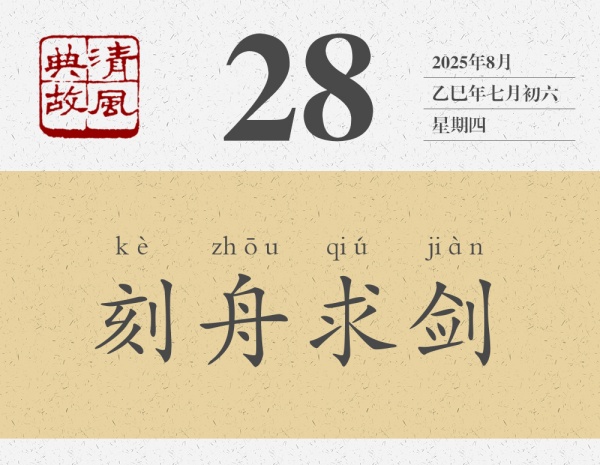 《呂氏春秋•察今》有一則寓言故事:“楚人有涉江者,其劍自舟中墜于水,遽契其舟曰:‘是吾劍之所從墜。’舟止,從其所契者入水求之。舟已行矣,而劍不行,求劍若此,不亦惑乎?”翻譯成現(xiàn)代漢語(yǔ)就是:楚國(guó)有個(gè)人坐船過(guò)江,他帶的劍從船上落入江中,于是他急忙在船邊上刻了一個(gè)記號(hào)說(shuō):“我的劍就是從這里掉下去的。”船靠岸以后,他就從船邊上刻有記號(hào)的地方下水,去找他的劍。船已經(jīng)在江面上走了一段距離,但沉入水底劍并沒(méi)有動(dòng),像這樣去找劍,不是太糊涂了嗎?