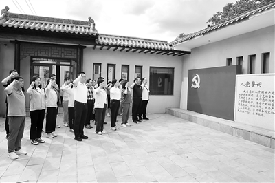 近日,山西省紀(jì)委監(jiān)委機(jī)關(guān)部分黨員在晉綏八分區(qū)(專署)舊址開展“傳承紅色基因,砥礪初心使命”主題黨日活動(dòng)。圖為黨員重溫入黨誓詞。王鵬波 攝