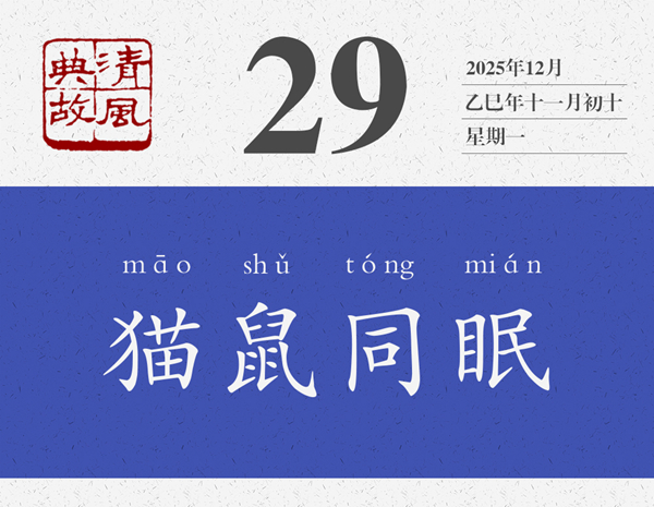 俗話說(shuō):“老鼠睡貓窩,白送一口肉。”但當(dāng)貓和老鼠住在一起,同進(jìn)同出的時(shí)候,情況則如另一句俗話所說(shuō):“老鼠嫁花貓,冤家變親家。”后遂以“貓鼠同眠”為典,比喻執(zhí)法者失職瀆職,包庇縱容違法犯罪者為非作歹;或形容官匪沆瀣一氣,同流合污。明人李開(kāi)先傳奇《林沖寶劍記》第六出:“都是讒言佞言,一個(gè)個(gè)貓鼠同眠。”