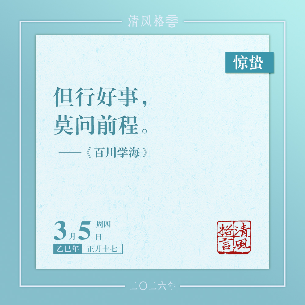 這兩句話可能也非馮道原創(chuàng),很多文獻(xiàn)都記載為“但行好事,莫問前程”的諺語。如《昨非庵日纂》援引宋代名臣趙抃的話說,有的人“說得一尺,行得一寸”,即我們常說的“語言的巨人,行動的矮子”,還有的人“任他極有見識”“隨你極有聰明”,可一較真便會露餡,畢竟投機(jī)取巧的偽善,置于實(shí)實(shí)在在的真善之下都不堪一擊。趙抃以為,一心奉行“好事”的人,一定是認(rèn)真踏實(shí)、埋頭做事,甚至?xí)燥@“拙”態(tài)的人,因?yàn)檫@樣的人,往往樸實(shí)無華,心地?zé)o私。