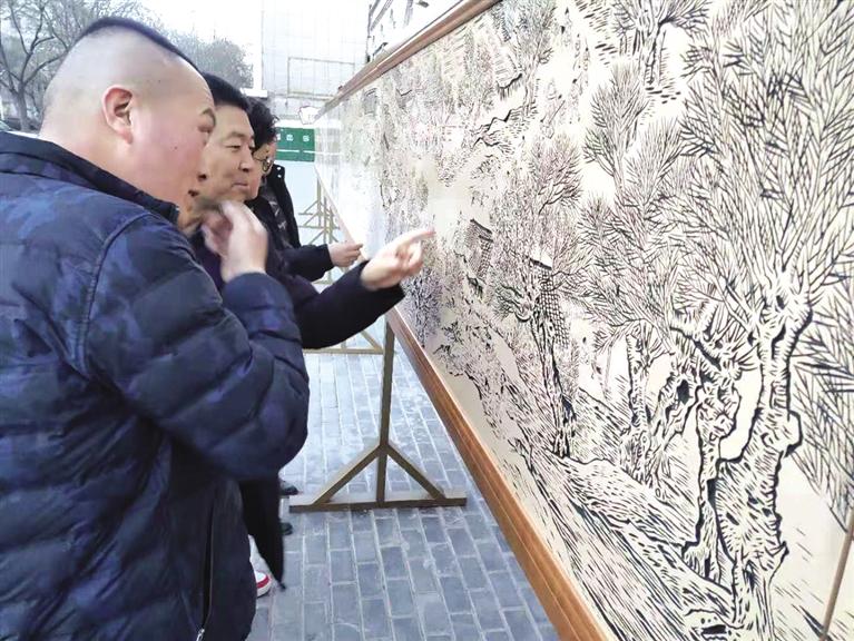 中國甘肅網(wǎng)1月22日訊 據(jù)蘭州晚報報道(記者 雒煥素 文/圖) 1月21日,長19米、寬0.91米的完整版純手工木刻作品《清明上河圖》,由武威民間手工書法木刻師安文宇耗時4年精心雕刻完成后展出。該木刻作品中的人物、樹木、樓閣、木船、水流、牲畜等都雕刻得細(xì)致入微、栩栩如生、逼真?zhèn)魃?,完美再現(xiàn)了《清明上河圖》的神韻。