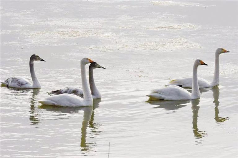 中國(guó)甘肅網(wǎng)1月7日訊 據(jù)蘭州日?qǐng)?bào)報(bào)道(記者 董永前 攝)最近幾天,西固區(qū)達(dá)川鎮(zhèn)三江口水域,成群天鵝在這里“落戶安家”,成為當(dāng)?shù)匾患恍〉男侣?,吸引不少市民和游客前來觀賞。