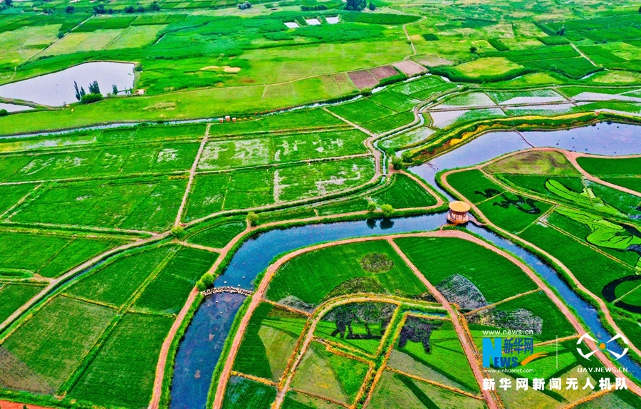 原標題:【“飛閱”中國】甘肅張掖:稻田作畫“繪”風景