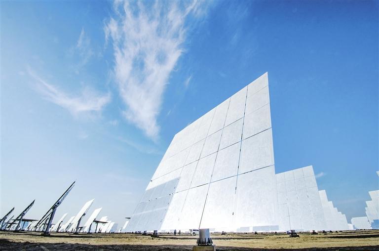 敦煌百兆瓦熔鹽塔式光熱發(fā)電站內(nèi)定日鏡。 謝沛宏
