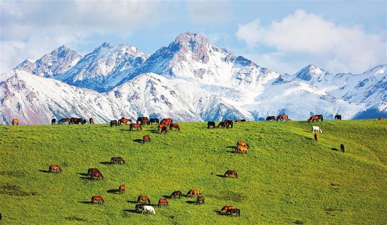 祁連山下的山丹馬場(chǎng)。甘肅省持續(xù)加強(qiáng)祁連山全域保護(hù)和系統(tǒng)修復(fù),依托現(xiàn)代科技建設(shè)“智慧祁連”,形成“天地空”一體化監(jiān)測(cè)網(wǎng)絡(luò),生態(tài)治理走上正規(guī)化信息化軌道。王 超攝(中經(jīng)視覺)