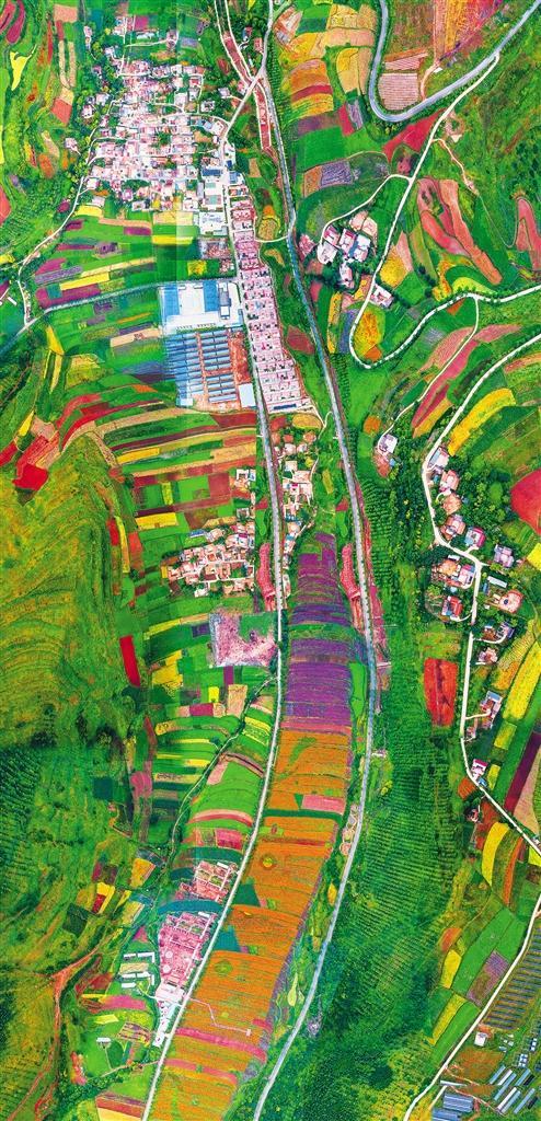俯瞰渭源縣田家河鄉(xiāng)元古堆村新貌。元古堆村通過發(fā)展農(nóng)產(chǎn)品加工、鄉(xiāng)村旅游、電子商務(wù)、光伏發(fā)電等產(chǎn)業(yè)實(shí)現(xiàn)脫貧摘帽,日子越過越紅火。王 濤攝(中經(jīng)視覺)