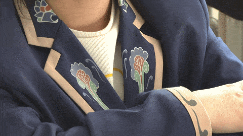 這套被全網(wǎng)羨慕的敦煌風校服設計靈感來源于敦煌莫高窟壁畫,選取自莫高窟壁畫第三十一窟團花卷草紋藻井圖中的部分元素。學生們身著敦煌文化元素的校服運動、學習,既是行走的敦煌文化傳播者,又是敦煌文化進校園的一次生動實踐,這樣富有文化內(nèi)涵和地方特色的校服也受到了孩子們的喜愛。