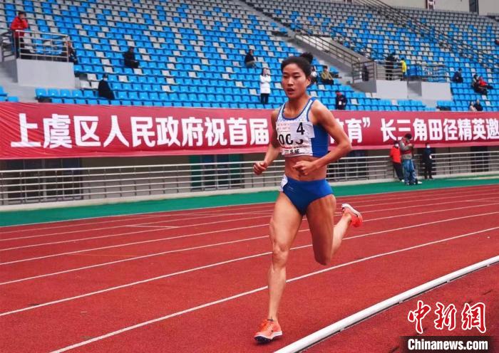 2021年4月,張新艷參加在浙江紹興上虞舉辦的首屆長(zhǎng)三角田徑精英邀請(qǐng)賽。(資料圖) 受訪者供圖