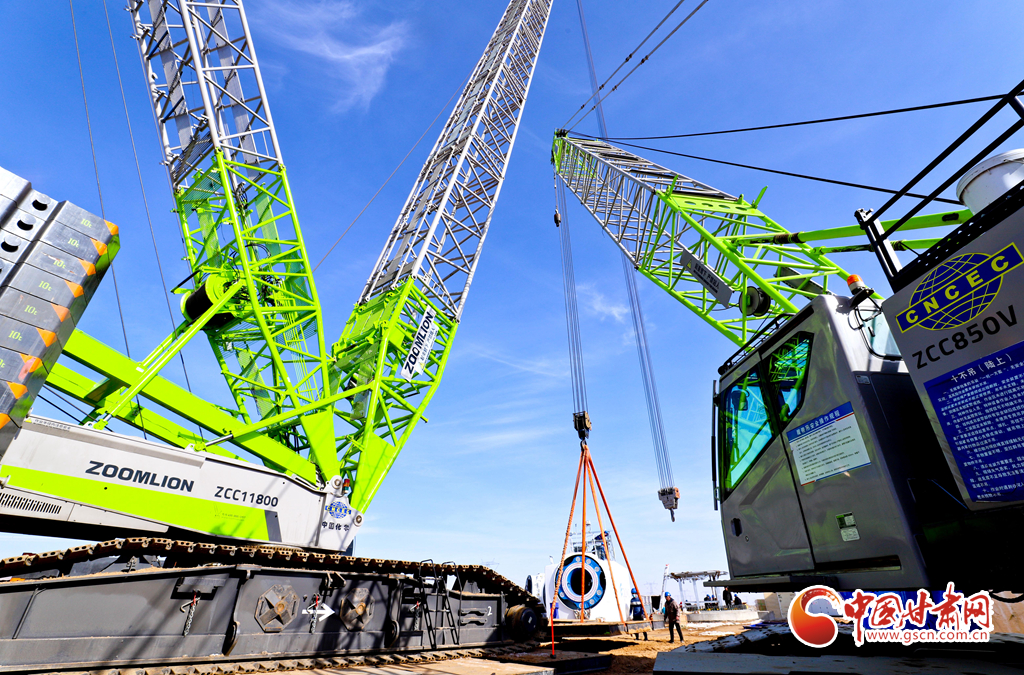 2月21日,張掖市臨澤縣平川北灘30萬(wàn)千瓦風(fēng)電項(xiàng)目建設(shè)現(xiàn)場(chǎng),工作人員正在進(jìn)行主機(jī)吊裝。