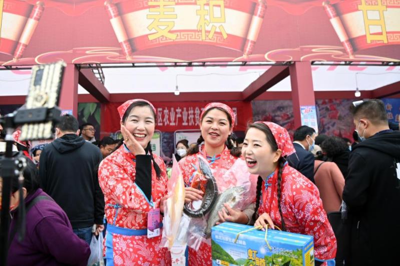 3月17日,“村花”直播團(tuán)直播帶貨,助力“甘味”產(chǎn)銷。當(dāng)日,甘肅省“田間行甘味產(chǎn)銷季”暨“云品甘味”促消費(fèi)活動啟動儀式在主會場天水市舉行。