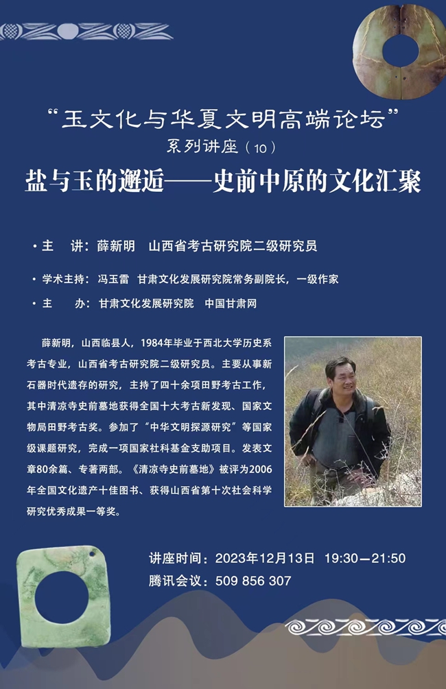 12月13日晚,山西省考古研究院二級研究員薛新明在線做了題為《玉器所見齊家文化時期甘青地區(qū)與關中地區(qū)的交流互動》的學術報告。這是甘肅文化發(fā)展研究院主辦的“玉文化與華夏文明高端論壇”系列講作活動第10講,也是今年的壓軸之講。