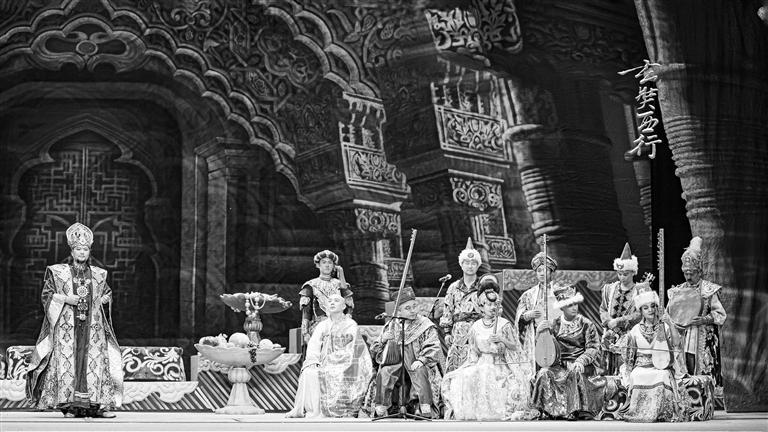 《玄奘西行》靠音樂的轉換,把人物內心通過音樂表達出來,將人物的心理變化賦予戲劇張力。姜瑩給甘肅省歌舞劇院演出的《玄奘西行》專門配了一版交響樂的伴奏,希望通過交響樂把底子鋪好,通過交響樂和民樂的融合達到氣勢恢宏的效果。
