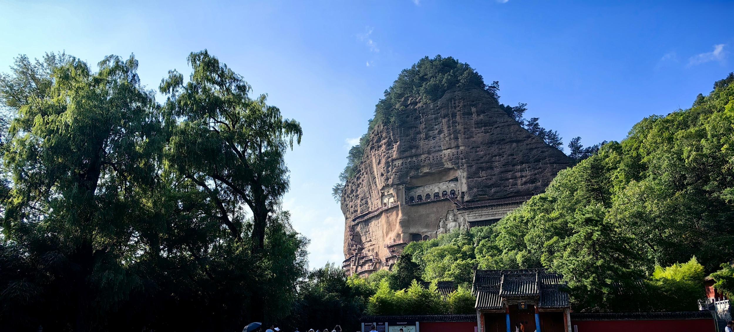 麥積山地處天水市東南部的群山之中,為秦嶺余脈,因山形酷似麥垛而得名。這里草木豐茂,清流遍地,麥積山一秀崛起,有“秦地林泉之冠”的美譽。