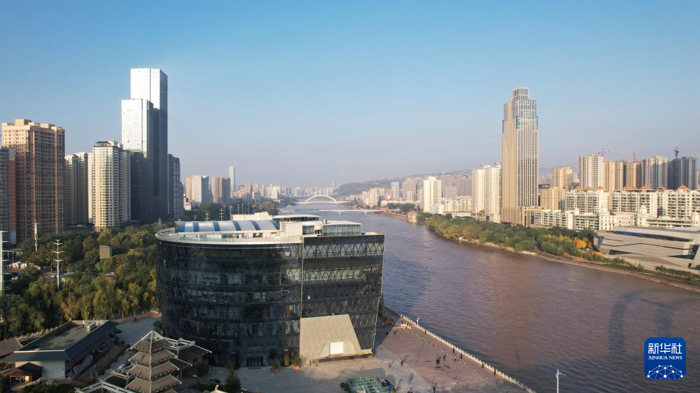 這是位于蘭州市城關區(qū)黃河南岸的蘭州音樂廳(10月17日攝,無人機照片)。新華社記者陳斌攝