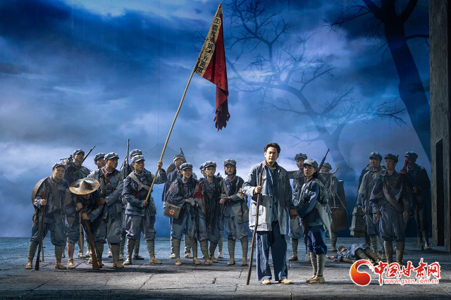 該劇以紅軍長征途經(jīng)甘肅哈達(dá)鋪的重要?dú)v史事件為背景,通過藝術(shù)化的舞臺(tái)呈現(xiàn),生動(dòng)展現(xiàn)了革命先輩的堅(jiān)定信念與偉大精神。全劇通過人物群像與歷史瞬間的交織,彰顯信仰力量與軍民深情,以時(shí)空交織的敘事結(jié)構(gòu),穿插毛澤東與周恩來回憶對(duì)話的閃回場景,通過“序—八場—尾聲”的結(jié)構(gòu),串聯(lián)紅軍在哈達(dá)鋪的休整與決策過程,兼具歷史縱深感與戲劇張力。