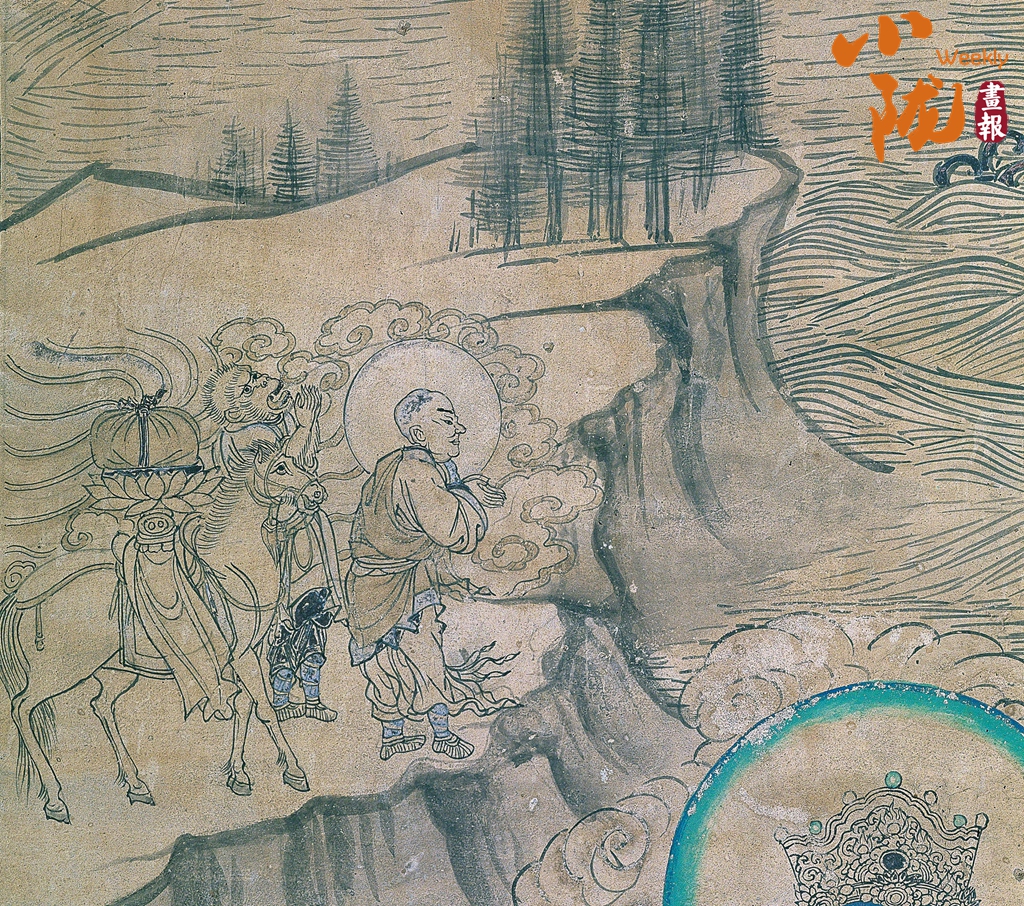 榆林窟作為莫高窟的“姊妹窟”,在馬文化的呈現(xiàn)上更藏別樣驚喜,更是《西游記》故事圖像的重要源頭。第3窟《普賢變》中的玄奘取經圖,白龍馬穩(wěn)穩(wěn)馱著佛經立于河岸,緊隨玄奘與猴面行者拜別普賢菩薩,這一形象比明代《西游記》典籍早了三百余年,將絲路取經故事與馬的意象完美聯(lián)結,成為藝術史上的經典瞬間。