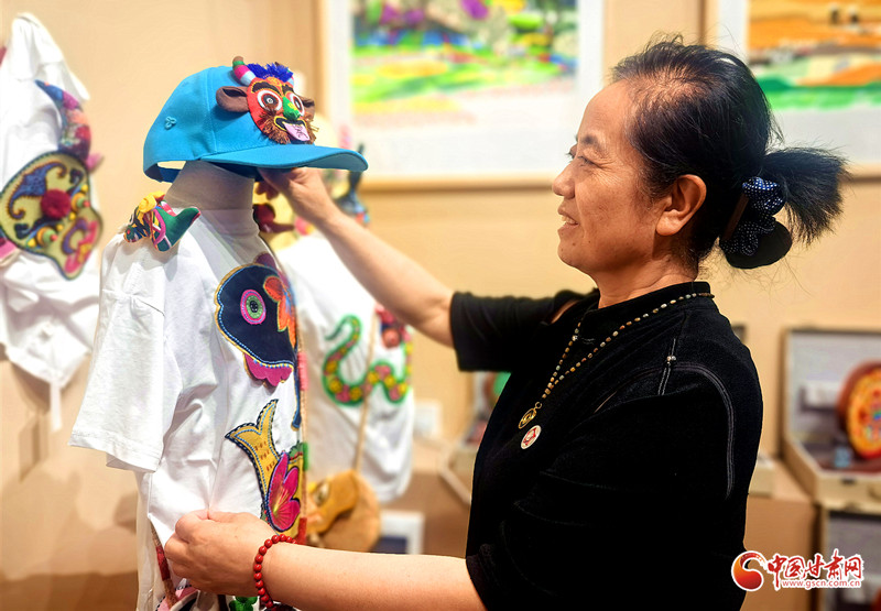 趙星萍的藝術(shù)創(chuàng)作扎根鄉(xiāng)土,從剪紙系列起步,拓展至創(chuàng)意香包,如今又融合剪紙、香包、刺繡、布貼畫等傳統(tǒng)技藝,開發(fā)出香包童裝T恤、刺繡帽子、剪紙臺燈等特色文創(chuàng)產(chǎn)品。其作品既傳承了隴東大地簡潔明快的藝術(shù)基因,又展現(xiàn)出新時(shí)代的創(chuàng)新活力。