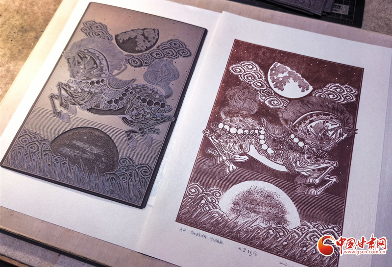 從彩陶紋樣到飛天神韻,從黃河之濱到絲路駝鈴,當(dāng)傳統(tǒng)技藝遇上現(xiàn)代思維,當(dāng)?shù)赜蛭幕鲎踩蛞曇?,趙寧的刀刻人生,既是個(gè)人對(duì)藝術(shù)的執(zhí)著追求,更是一位非遺傳承人對(duì)文化根脈的深情守護(hù)。正如他所說(shuō):“版畫(huà)不是冰冷的木板,而是有溫度的文化記憶。”在這方寸之間的刻板上,甘肅的故事正被重新書(shū)寫(xiě),非遺傳承也在時(shí)代語(yǔ)境下實(shí)現(xiàn)著創(chuàng)造性轉(zhuǎn)化,綻放出更加絢爛的光彩。