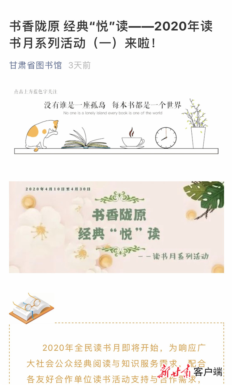 讓我們一起讀書吧!甘肅省圖書館推出線上讀書月系列活動