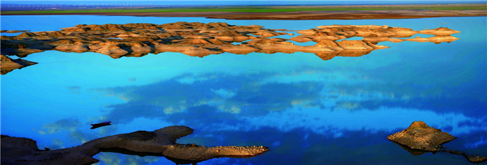 都將大漠風(fēng)塵惱,滿(mǎn)目沙石島。塞上有江南,綠樹(shù)清溪,早把春來(lái)報(bào)。