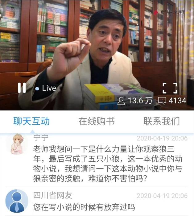 時間的指針再往回撥,此前,作家沈石溪開啟直播形式的線上課程,累計有超過14萬人觀看,當天他的作品《狼王夢》賣出1萬多冊,碼洋超過30萬元。
