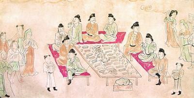 郊野聚飲圖 選自陜西旅游出版社1996年出版的《大唐壁畫(huà)》