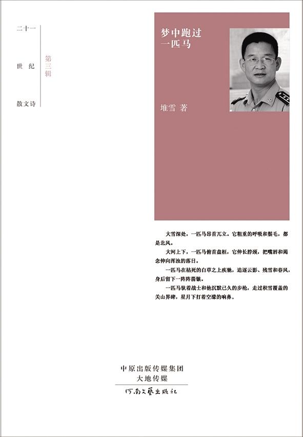 近期,堆雪的軍旅長篇散文詩集《兵詞》將由解放軍出版社出版發(fā)行,這一百多首散文詩,是他軍旅生活的詩性抒寫、士兵情懷的靈魂歌吟、鐵血沙盤的精神熔鑄、迷彩青春的深情回眸,也是他對廣袤西北和鏗鏘軍營的精神回饋。堆雪說:“或許,在詩壇的花叢中,我本不曾采擷到一兩朵馨香與璀璨。但這不要緊,這并不妨礙我醉心文學(xué),垂青詩神。”