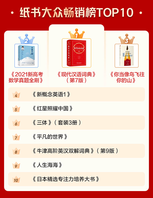 高考是中國大多數(shù)學生的必經(jīng)之路,想要從萬人中脫穎而出,需要付出許多的努力。從京東圖書數(shù)據(jù)不難看出,攻克數(shù)學難關(guān)已成為萬千學子的重要任務(wù),在2020年最暢銷的大眾新書和最暢銷的大眾紙書中,《2021新高考數(shù)學真題全刷》分別排名第一、第二。