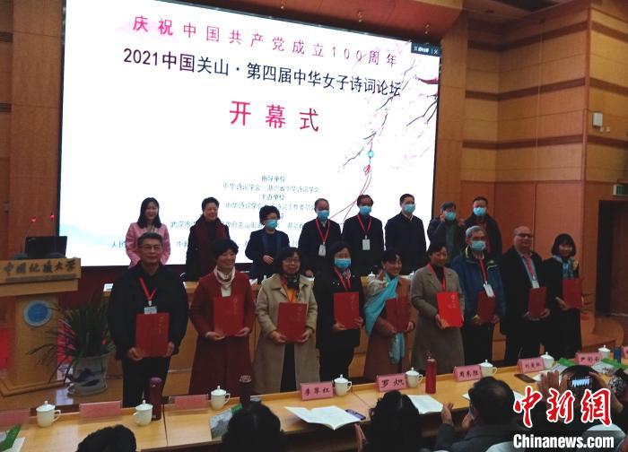 中新網(wǎng)武漢3月21日電 (記者 艾啟平)2021中國(guó)關(guān)山·第四屆中華女子詩詞論壇21日在中國(guó)地質(zhì)大學(xué)(武漢)開幕,全國(guó)各地嘉賓、詩詞界人士以及詩詞愛好者等200余人出席。中國(guó)古典文學(xué)研究專家葉嘉瑩通過視頻為論壇發(fā)來賀詞。