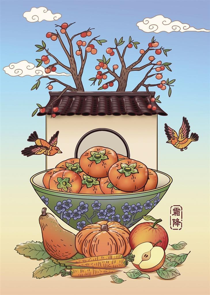 “對(duì)于節(jié)氣起源地區(qū)來(lái)說(shuō),‘霜降見(jiàn)霜花兒,立冬見(jiàn)冰碴兒’。”宋英杰表示:“雖然民間仍稱(chēng)霜降為‘下霜了’,但在漢代,人們便已知曉霜是‘其由地發(fā),不從天降’的道理。因此,霜并非從天而降,而是遇物而凝。當(dāng)近地面的溫度低于0℃時(shí),水汽凝結(jié)成晶瑩的霜花或冰針。我們以‘凌霜做雪’形容性情的堅(jiān)韌,以‘飽經(jīng)風(fēng)霜’形容歲月的磨礪。‘風(fēng)刀霜?jiǎng)?rsquo;,霜被描述成一種鋒利的冷兵器,成為‘殺’的代名詞。”
