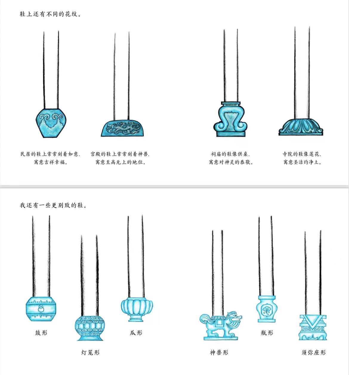 介紹柱礎(chǔ)時(shí),講述中國(guó)房子也有很多漂亮的石頭鞋子: