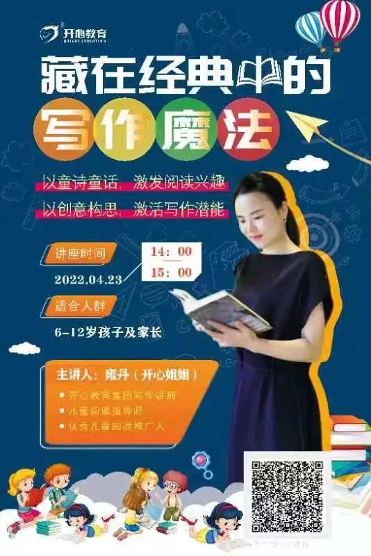 書(shū)香潤(rùn)校園·一堂開(kāi)心讀寫(xiě)魔法課,以童詩(shī)童話,激活孩子的閱讀興趣以創(chuàng)意構(gòu)思,激活孩子的寫(xiě)作潛能快來(lái)掃碼預(yù)約直播吧。