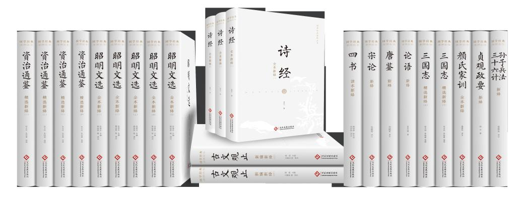 叢書第一輯共12種23冊,包括《四書讀本新繹》《詩經(jīng)全本新繹(全三卷)》《昭明文選全本新繹(全五卷)》《古文觀止新編新繹(上下)》《唐鑒新繹》《宋論新繹》《論語新繹》《顏氏家訓(xùn)全本新繹》《資治通鑒精選新繹(全四卷)》《三國志精選新繹(上下)》《孫子兵法·三十六計新繹》《貞觀政要新繹》,內(nèi)容涉及政治、哲學(xué)、文學(xué)、歷史、軍事等。