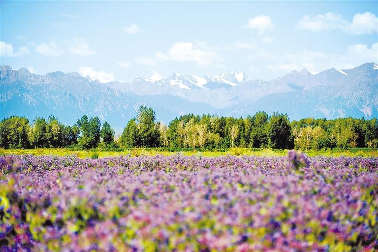 一年四季,祁連山綻放出獨(dú)特韻味。連綿的雪峰,白凈的云朵,綠色的山巒,純凈的湖泊,如茵的草原,悠閑的牛羊,紫色的花海,紅色的丹霞,黃褐色的丘陵,儼然一幅美麗的畫(huà)卷。