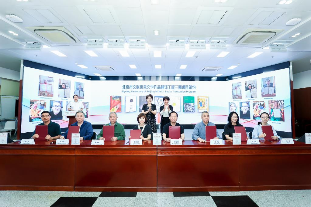 開幕式上,發(fā)布了北京市文聯(lián)優(yōu)秀文學(xué)作品翻譯工程圖書成果,周曉楓《星魚》意大利文版和英文版、葉廣芩《花貓三丫上房了》法文版、星河《北京小子》阿文版集中亮相。梁曉聲《我和我的命》、張之路《吉祥時(shí)光》、格非《月落荒寺》、畢淑敏《預(yù)約死亡》、肖復(fù)興《我們的老院》、張悅?cè)弧段已鸸舛鴣怼?、寧肯《蒙面之城?部作品簽署版權(quán)輸出協(xié)議,這些優(yōu)秀文學(xué)作品即將“走出去”與海外讀者見面。