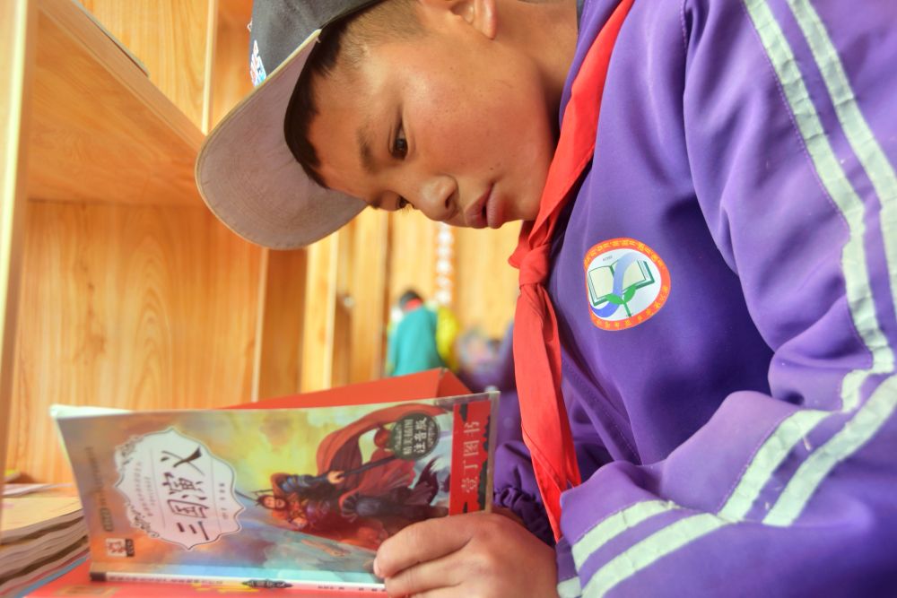 格桑加措的英語(yǔ)老師潘紅培將圖書(shū)整理分類(lèi),她來(lái)自河南,已在申亞鄉(xiāng)小學(xué)支教兩年多。她說(shuō):“書(shū)籍是給孩子們最好的禮物,使孩子們的心靈受到滋潤(rùn)、生活更加美好。有時(shí)候,他們吃飯時(shí)也要帶上書(shū)。”