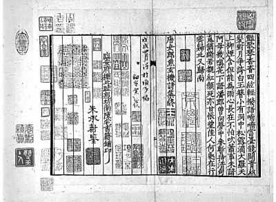 范景中先生曾見過謝蘭墀擺印本《唐宋文醇》,是書“正文用墨印,墨點用朱印,御評用黃印,朱子評用朱印,各家評用藍印,實為四色套印”。至于《唐宋詩醇》,范先生認為是木活字五色套印。其主要依據(jù)是《詩醇》凡例云:“評語悉準《唐宋文醇》之例,色別書之,但其中有援據(jù)正史雜說用資考訂疏解者,與古今人評詩之語義各有在,《文醇》未經(jīng)區(qū)別,今于藍筆之外,另作綠筆書,以便閱者,燦若列眉。”按照凡例的說法,《詩醇》在《文醇》朱、墨、黃、藍的基礎(chǔ)上又加了綠色,由此可知是五色套印本。實際上《唐宋詩醇》中并無康熙御評,因此未用黃色。湖南省圖書館藏有一部謝蘭墀擺印本《唐宋詩醇》,八冊,四十七卷全。我們委托張諾丕同學(xué)代檢全書,亦僅朱、墨、藍、綠四色而已,由此可知楊成凱先生所說四色套印本是正確的,而《增訂四庫簡明目錄標注》著錄的五色套印本恐不可信。