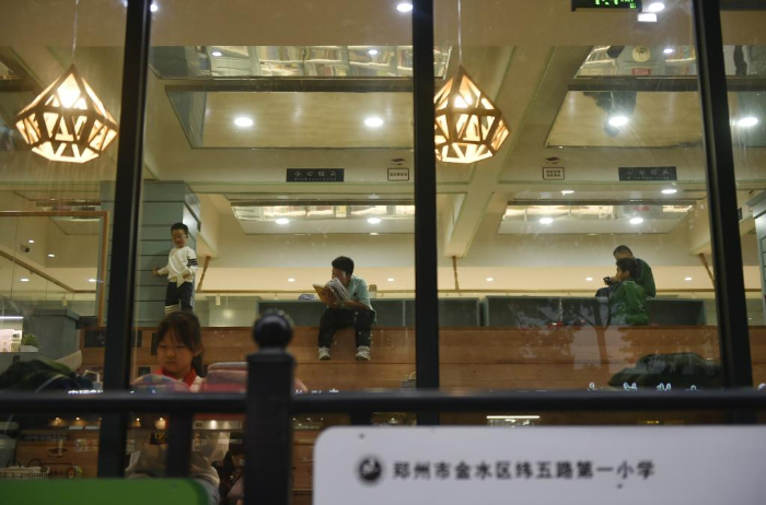 10月18日,小學(xué)生在鄭州市緯五路第一小學(xué)校園閱讀中心內(nèi)閱讀。