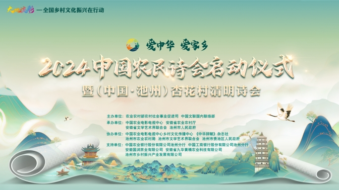 大地流彩,詩賦“三農(nóng)”。3月31日,“大地流彩—全國鄉(xiāng)村文化振興在行動”重點活動“愛中華愛家鄉(xiāng)”2024中國農(nóng)民詩會啟動儀式暨(中國·池州)杏花村清明詩會在安徽池州杏花村文化旅游區(qū)舉辦,主題為“春和景明詩出池州”。本次活動由農(nóng)業(yè)農(nóng)村部農(nóng)村社會事業(yè)促進(jìn)司、中國文聯(lián)國內(nèi)聯(lián)絡(luò)部主辦,中國農(nóng)業(yè)電影電視中心、安徽省農(nóng)業(yè)農(nóng)村廳、安徽省文學(xué)藝術(shù)界聯(lián)合會、池州市人民政府承辦。