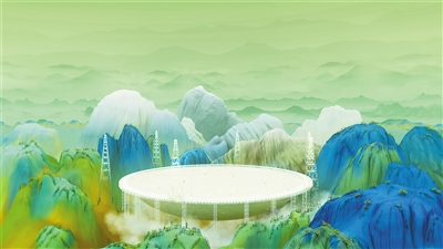 數(shù)字技術(shù)的賦能,進一步打開青綠山水創(chuàng)作空間。在黨的二十大勝利召開之際,人民日報社新媒體中心在全網(wǎng)上線創(chuàng)意動畫視頻《新千里江山圖》,數(shù)字技術(shù)與中華優(yōu)秀傳統(tǒng)文化元素相結(jié)合,輔以青綠色彩,鋪展一幅新時代的“千里江山圖”,生動講述中國故事。還有一些創(chuàng)作者以“藝術(shù)+科技”思維,用數(shù)字藝術(shù)重新演繹青綠山水之美。比如藝術(shù)家靳軍的個人展覽“數(shù)境等觀”,便呈現(xiàn)了他近年來以數(shù)字藝術(shù)“轉(zhuǎn)譯”傳統(tǒng)圖像和意境的多組作品。光影流轉(zhuǎn)中,觀眾得以沉浸式體驗青綠之美。