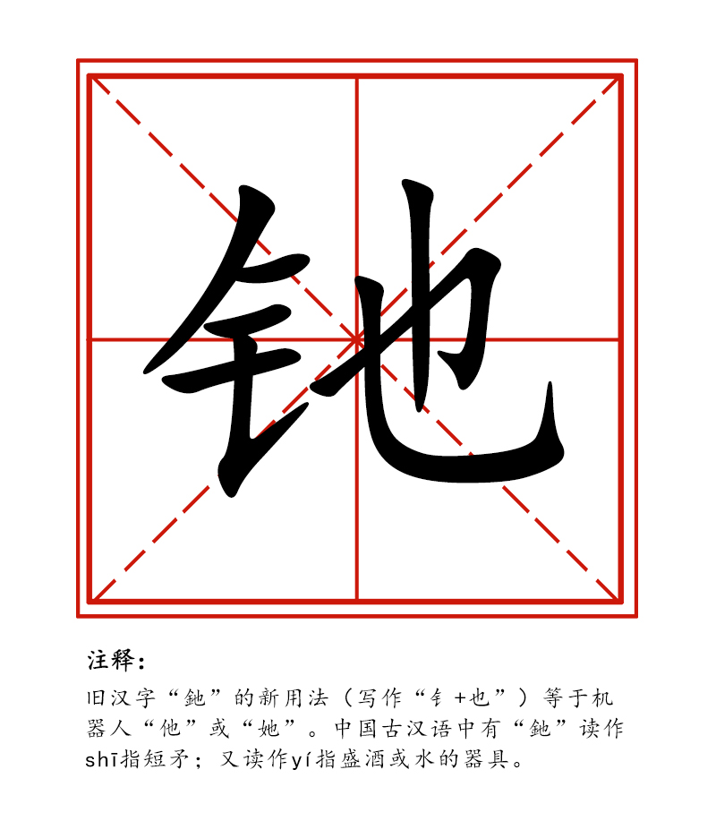 中國甘肅網(wǎng)1月23日訊 近日,范鵬教授通過朋友圈為舊漢字“釶”發(fā)明了一種新用法,寫作“钅+也”,將其定義為等同于機器人的“他”或“她”。