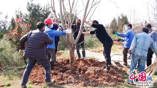 合力扶苗、揮鍬填土、踩實壓緊、提桶澆水……3月10日,在湖南省武岡市荷塘村義務植樹基地,黨員群眾分工協(xié)作、相互配合,每個環(huán)節(jié)都一絲不茍。經過一上午的忙碌, 一棵棵櫻花樹迎風挺立,把山頭裝點得綠意盎然。今年,武岡繼續(xù)啟動55個美麗鄉(xiāng)村綠化美化建設,繼續(xù)改善城鄉(xiāng)環(huán)境,提高人民群眾的獲得感和幸福感,為爭創(chuàng)省級森林城市“添磚加瓦”。